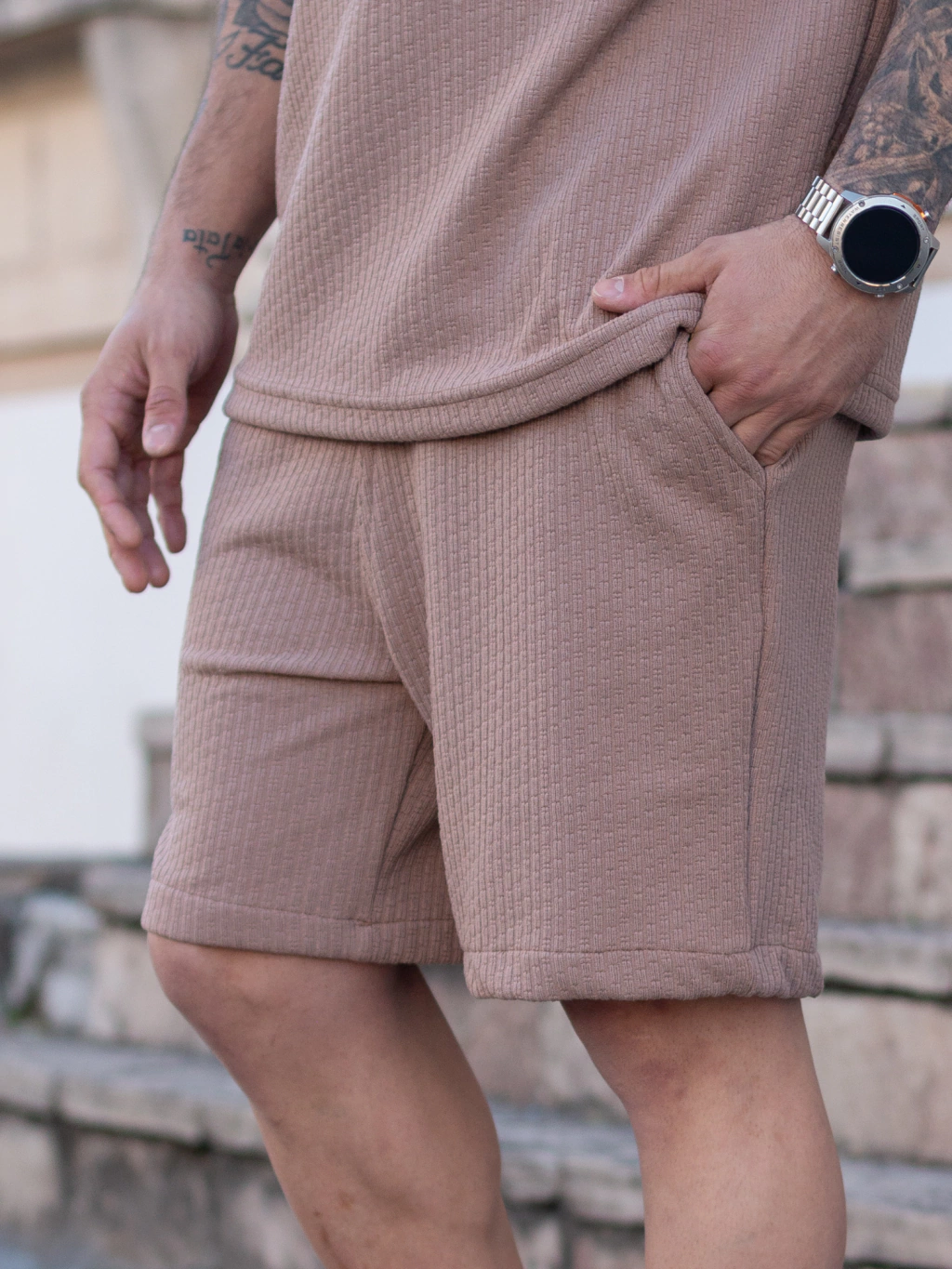 Bermuda con textura. Cuenta con cintura elastizada y ajustable, dos bolsillos delanteros y uno trasero.
