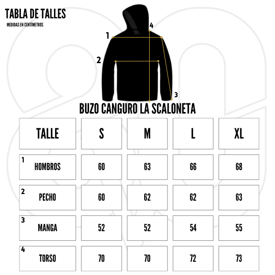 Tabla de talles: Las medidas están expresadas en centímetros, y fueron tomadas sobre una superficie plana con la prenda en reposo (sin estirar).