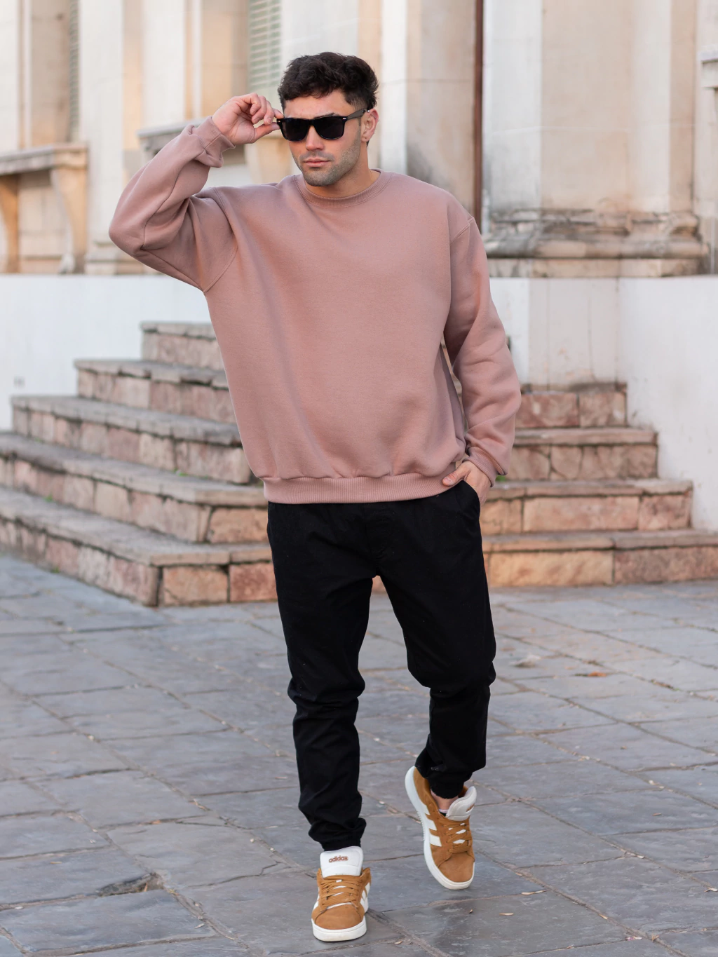 Buzo liso con cuello redondo, con frisa en su interior. Puños, cintura, y cuello en Ribb. Corte regular.