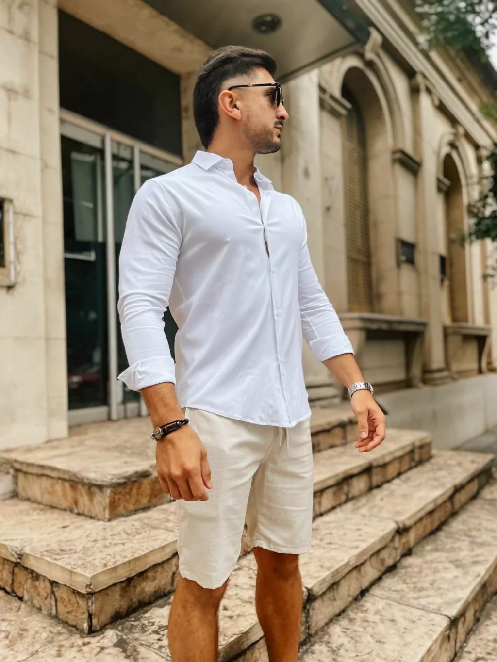 Camisa manga larga clásica de poplin con lycra, slim fit, con cuello italiano. Elegante, sofisticada. Un infaltable en tu guardarropa.
