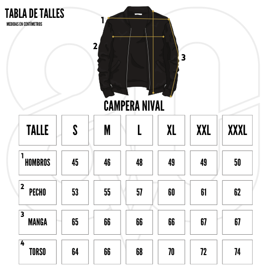 Revisá nuestra tabla de talles para asegurarte la indicada para vos. Las medidas están expresadas en centímetros, y fueron tomadas sobre una superficie plana con la prenda en reposo (sin estirar).