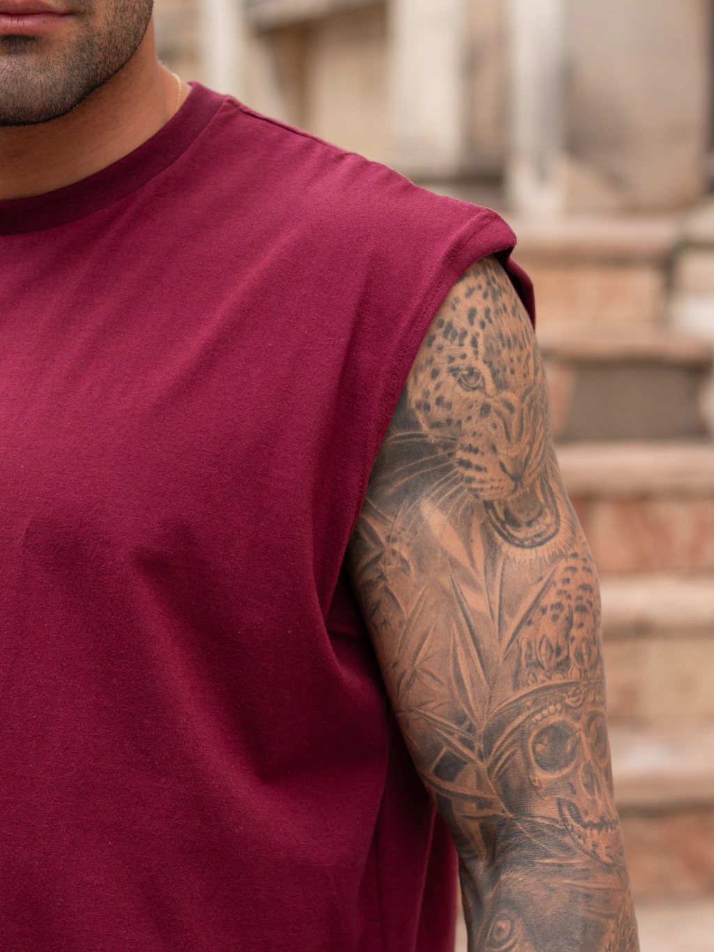 Musculosa básica de algodón 24/1 peinado, corte oversize.