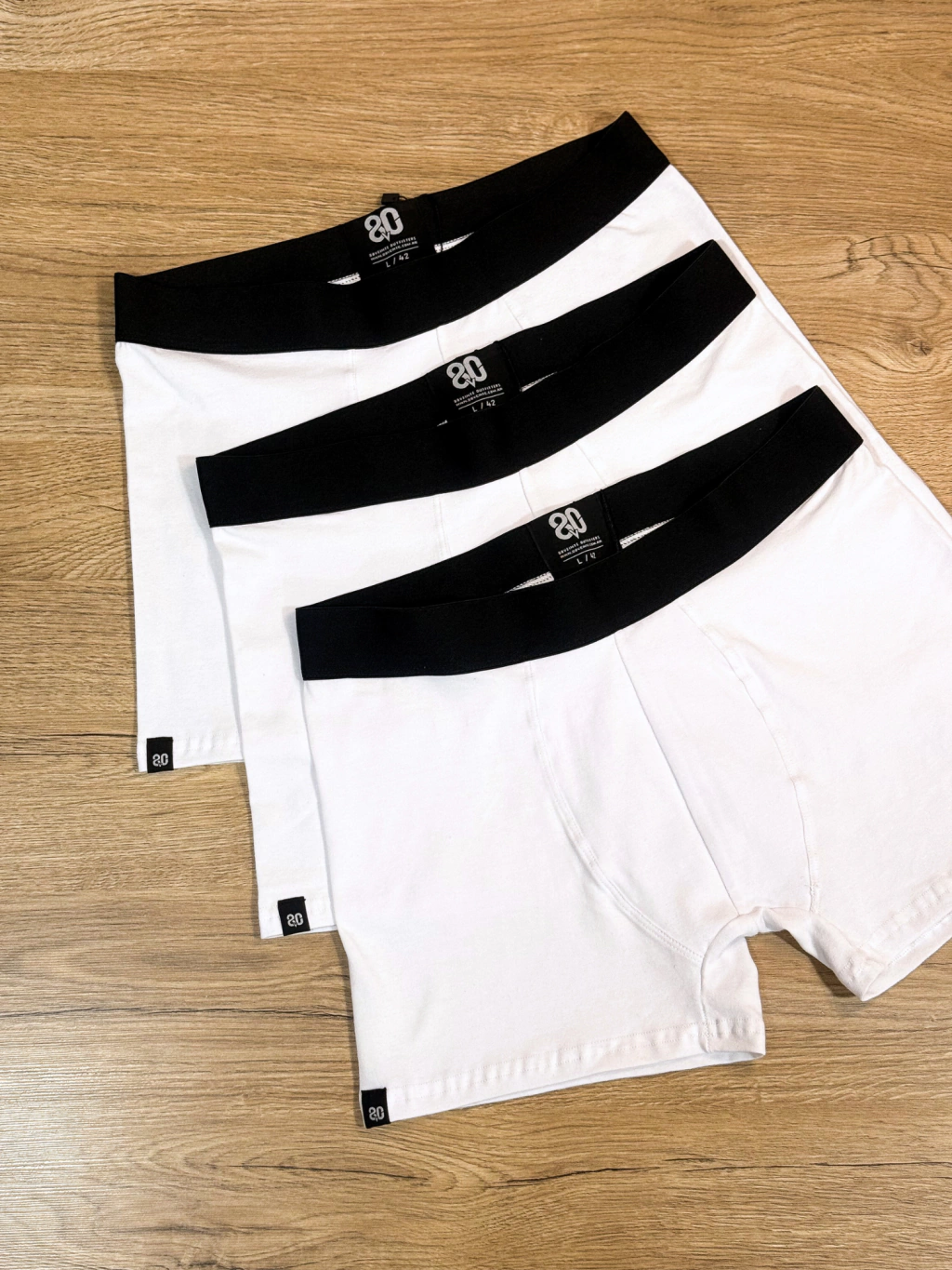 Boxers de algodón con lycra, con cintura elastizada negra lisa, con detalle minimalista de nuestra marca en la pierna derecha.