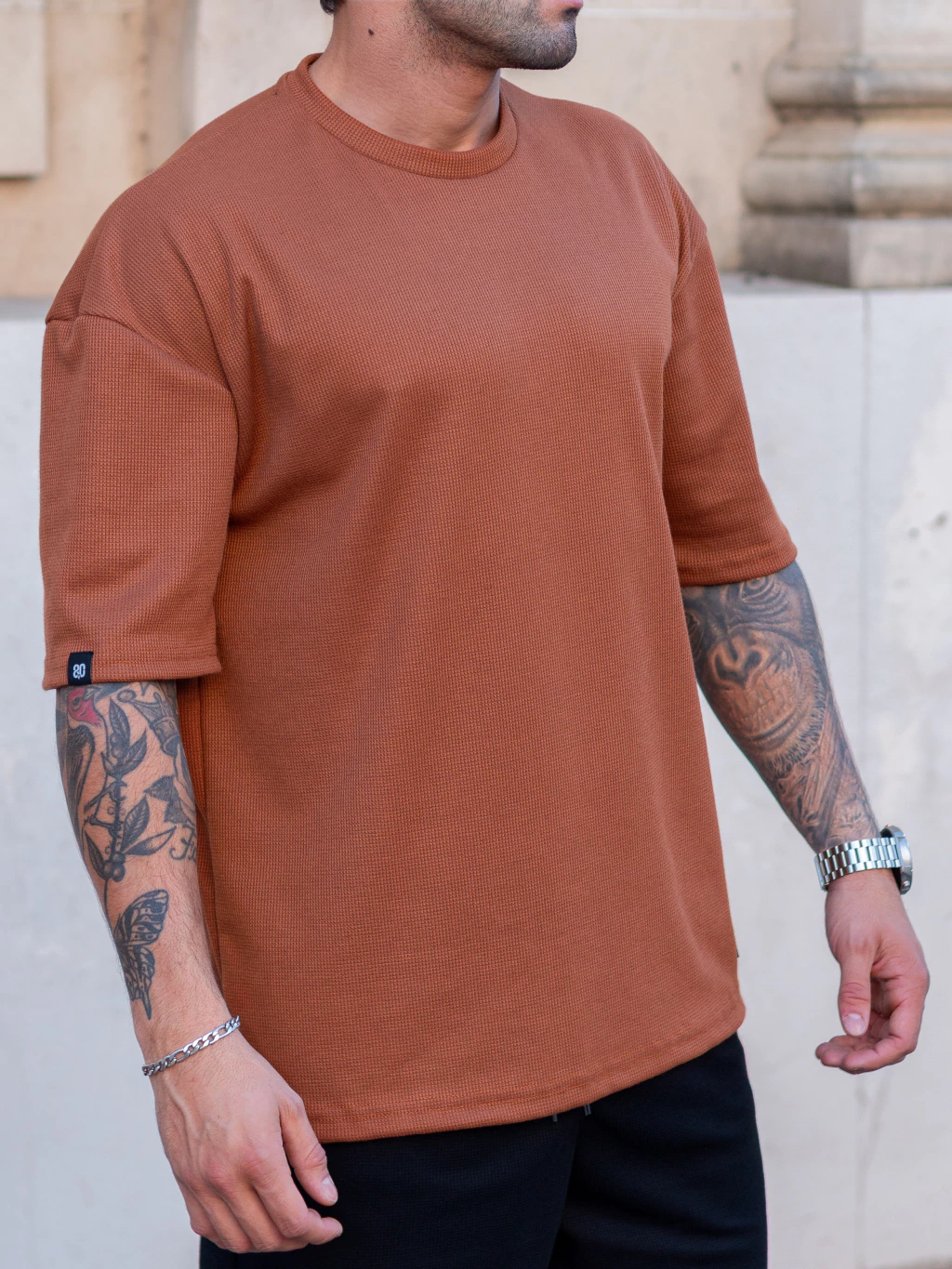 Composición: Tela waffle, calce oversize.
