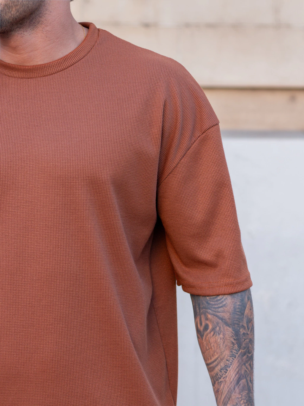 Remera de waffle oversize con cuello redondo. Esta prenda combina la suavidad del tejido de waffle con un diseño moderno y holgado, proporcionando comodidad y estilo. El molde oversize ofrece un ajuste relajado, mientras que el cuello redondo añade un toque de elegancia. Perfecta para cualquier ocasión.