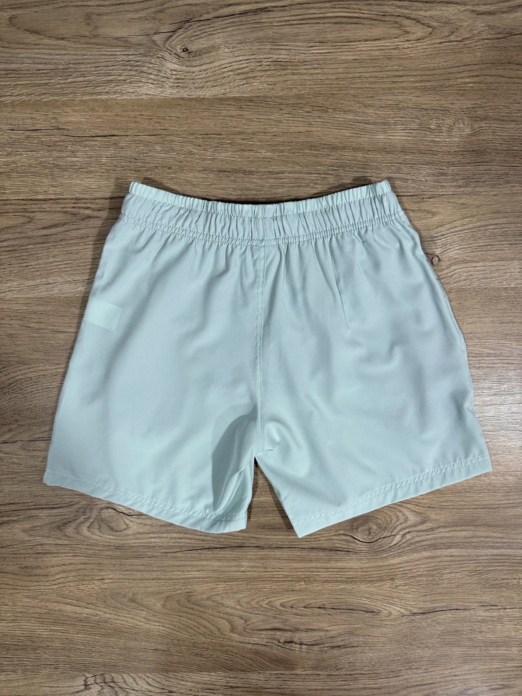 Short de baño liso de secado rápido con spandex, con dos bolsillos laterales, cintura elastizada y cordón ajustable para garantizar un calce percefcto. Interior de red. Confeccionado con materiales importados de primera calidad.