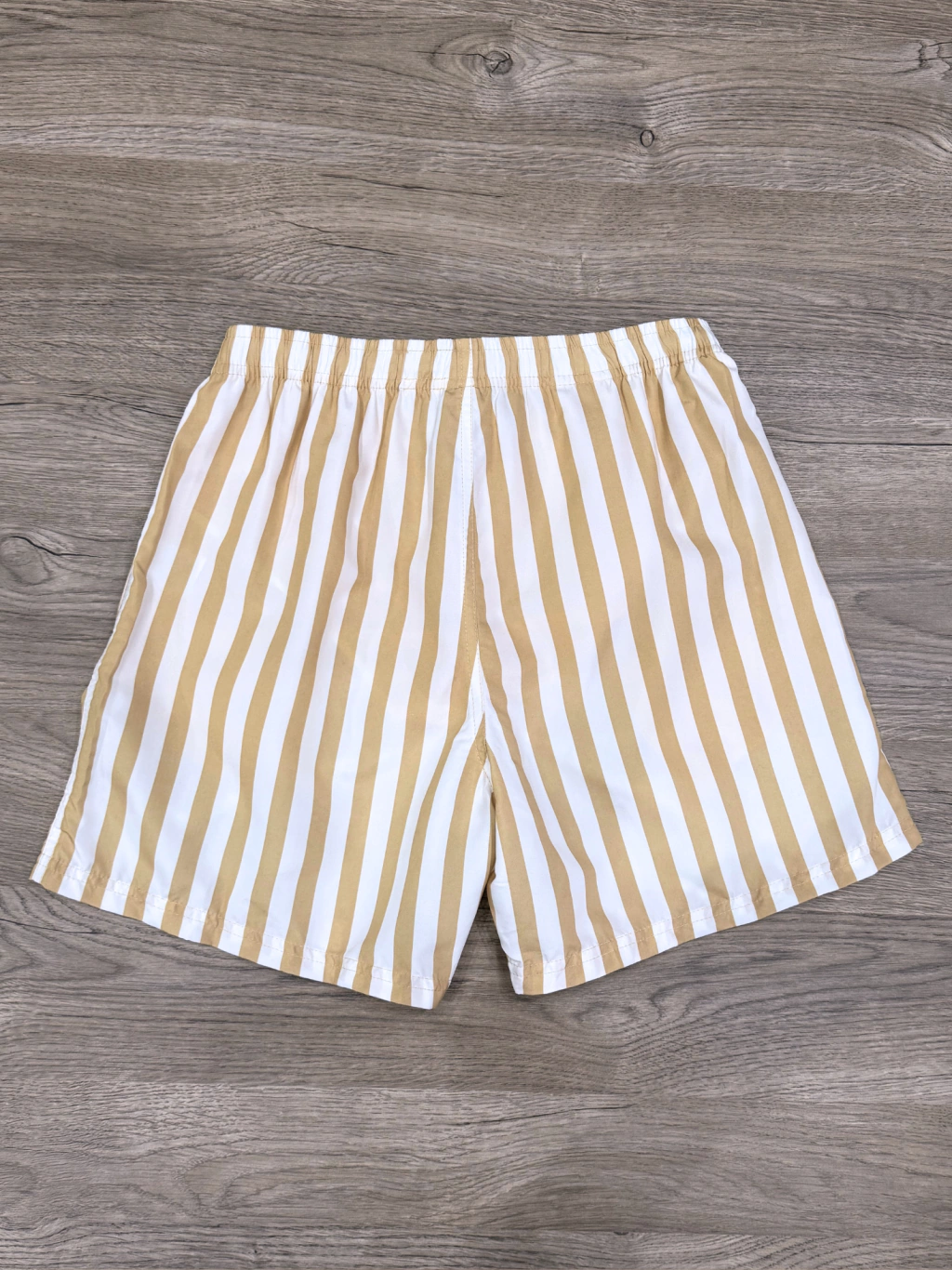 Short de baño de secado rápido, con diseño de rayas anchas, con dos bolsillos laterales, cintura elastizada y cordón ajustable para garantizar un calce percefcto. Interior de red. Confeccionado con materiales importados de primera calidad.